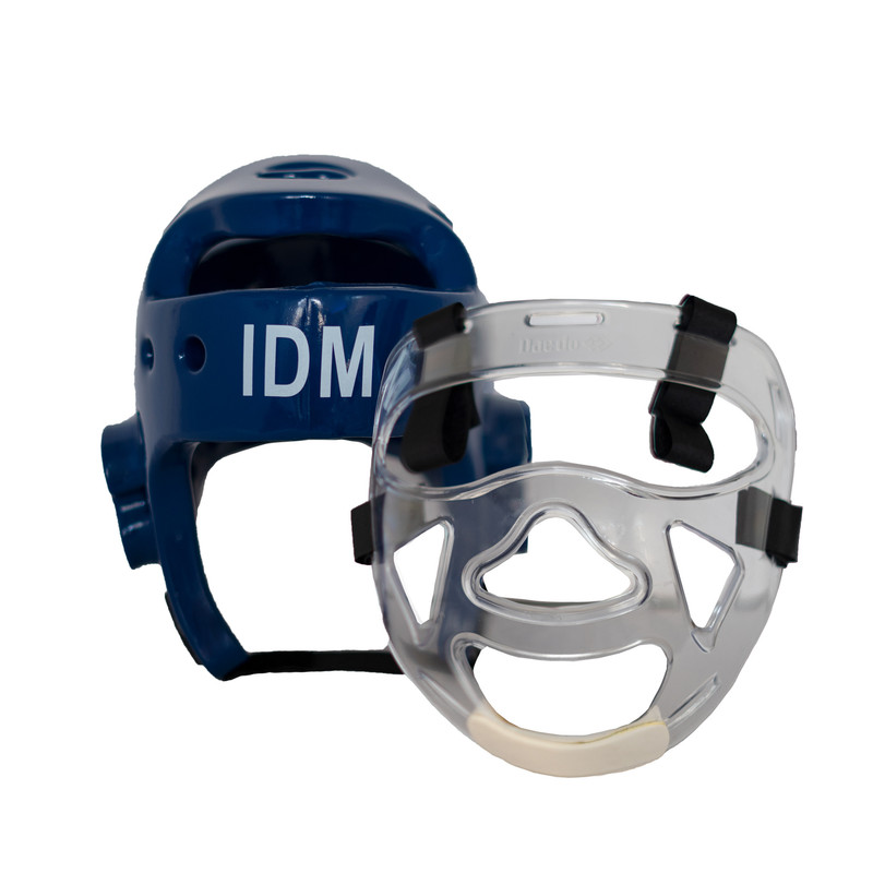 کلاه تکواندو برند IDM برندی نام آشنا در عرصه تجهیزات رزمی می باشد این کلاه دارای تاییدیه فدراسیون می باشد و وارداتی کشور چین می باشد و تا چندین سال فرم خود را حفظ می کند، نقاب محافظ صورت نیز روی کلاه قرار گرفته تا از ضربه به صورت جلوگیری شود و کلاه ایمنی جهت مبارزات می باشد. این کلاه دارای چهار سایز مدیوم (7 تا 12) لارج (مناسب برای سن 13 تا 18سال)، ایکس لارج (18 سال به بالا)، البته بستگی به سایز سر هم دارد و می توانید کمی بزرگتر نیز انتخاب کنید. بر خلاف نمونه های تولید شده در داخل کشور با قیمت پایین تر به هیچ عنوان فرم خود را تغییر نمی دهد و همچنین بافت داخل آن پودر نمی شود.