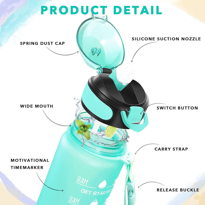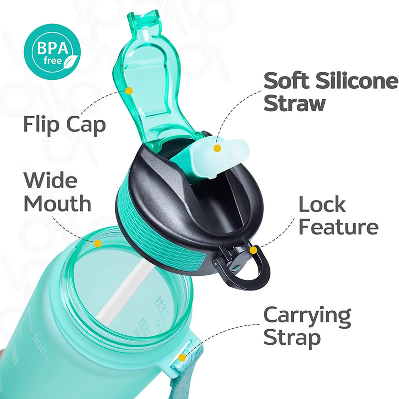 مزیت استفاده از این جنس بطری، همانطور که در بالا توضیح داده شد، علاوه بر حفاظت از محیط زیست و سلامت افراد را نیز در بر می گیرد. زیرا مواد به کار رفته از پلاستیک نمی باشد.داشتن این بطری آب پشت میز کار یا در کیف باشگاه یک چیز است، اما فراموش کردن پر کردن مداوم آن چیز دیگری است. یکی از تاکتیک های مفید این بطری های آب، برچسب زمانی است که به آسانی می توانید ببینید که چقدر آب می نوشید که فراتر از بطری آب معمولی است. این بطری آب با طراحی ارگونومیک دارای انواع ویژگی های متمایز و کاربردی است. درب بالا با قفل ایمن طراحی شده است که آن را ضد گرد و غبار و نشت می کند. دکمه فشاری با یک کلیک برای باز کردن راحت تر درب بطری بوده و دهانه ویژه آن برای جریان بهتر آب طراحی شده است. نشانگر زمان به شما کمک می کند تا میزان دفعات نوشیدن آب را پیگیری کنید و راهی عالی برای حفظ سلامتی خود می باشد. این بطری از جنس پلاستیک کوپلی استر تریتان بوده که بدون سم ساخته میشوند و این اطمینان را میدهد که آب بطری شما از مواد شیمیایی خطرناک، بو یا طعم پلاستیک به دور است. این بطری برای پیاده روی، دوچرخه سواری، کمپینگ، دویدن، یوگا یا هر ورزش دیگری در خانه، باشگاه و اداره مناسب می باشد.
