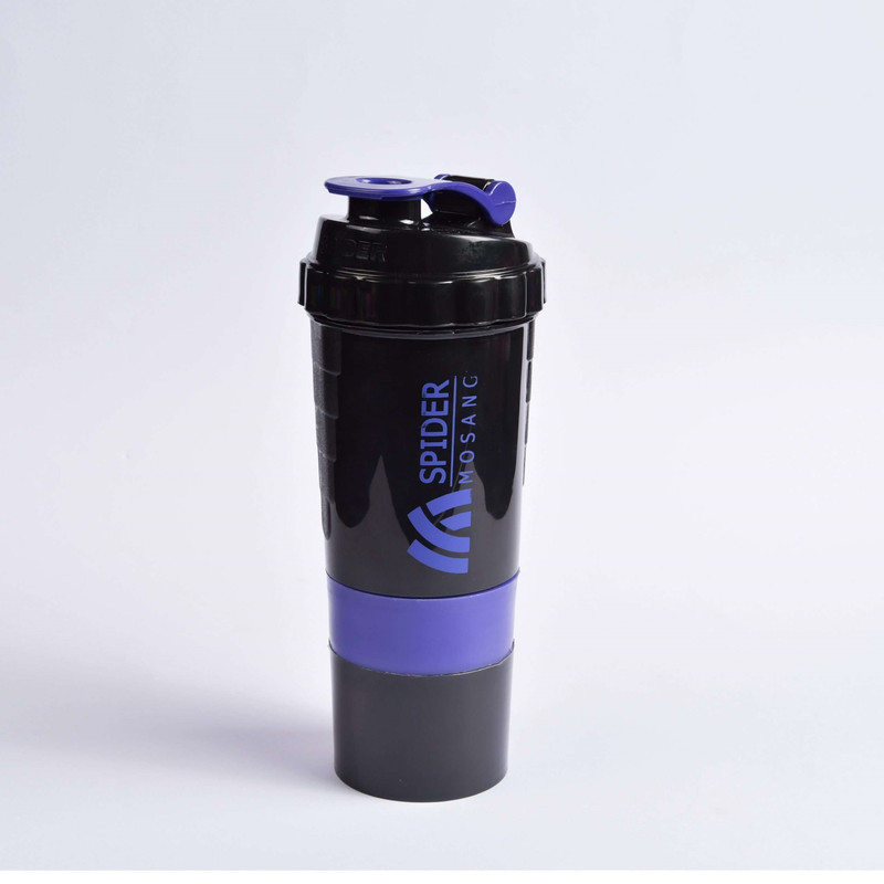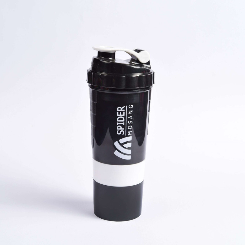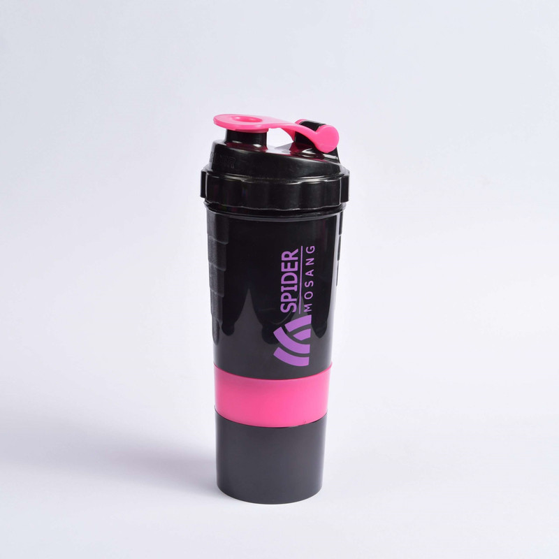 بطری شیکر دار اسپایدر با ظرفیت گنجایش 500 میلی لیتر بهترین پیشنهاد برای ورزشکارانی است که از تکان دادن های شدید بطری های پروتئین خود خسته شده اند! این بطری دارای یک شیکر فنری منحصر به فرد است که با چند تکان ساده می تواند مخلوط آب و پروتئین شما را به راحتی مخلوط کرده و قوام یک دستی به مخلوط دهد که از نوشیدن آن لذت ببرید، و روی تمرینات خود تمرکز کنید! این بطری دارای سه نگهدارنده است که دو عدد آن برای نگهداری پودر و یک نگهدارنده برای قرص های بدنسازی است که در زیر بطری اصلی تعبیه شده اند با این شرایط همیشه می توانید مخلوط پروتئین تازه مصرف کنید که مفید تر و سالم تر است. طراحی بطری کاملا ارگونومیک بوده و در رنگ های مختلفی عرضه می شود. درب بطری واشر دارد و محکم است و مخلوط یا آب به سادگی نشت نمی کند. قابل شستشو در ماشین ظرفشویی نیز می باشد. این محصول علاوه بر اینکه برای بدنسازان و تمام ورزشکاران مناسب است برای استفاده خانگی مثل مخلوط کردن اسموتی یا خمیر پنکیک هم مناسب است. این قمقمه عاری از هر گونه BPA (بیس فنول آ) است. ابعاد این قمقمه ارتفاع 25 و قطر 8 سانتی متر می باشد.